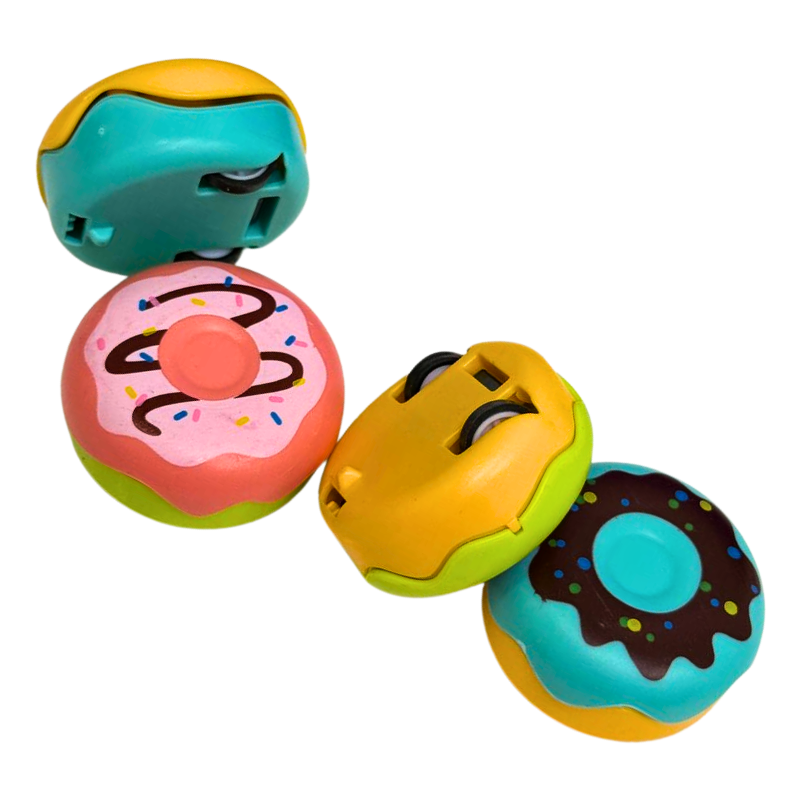- DESCRIPTION: Mini pull-back toy cars shaped like doughnuts, available in assorted “flavours” and colors. Fun, collectible, and perfect for kids’ activity packs, classroom rewards, or donation kits that add a touch of play.