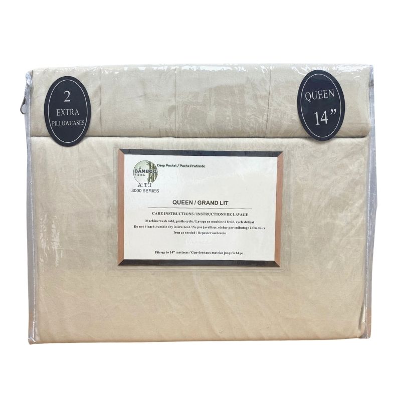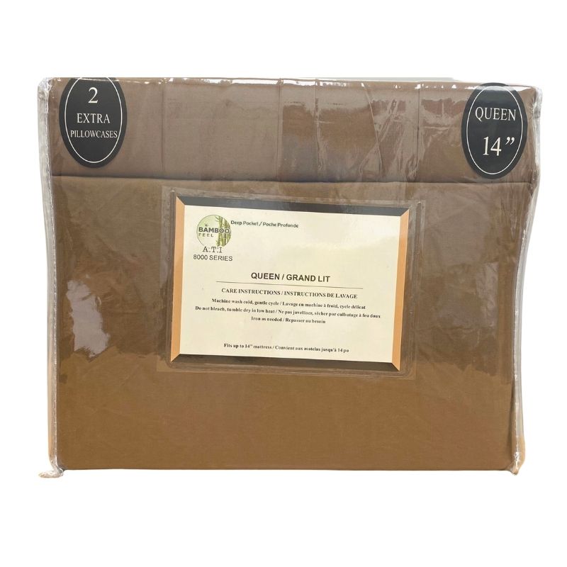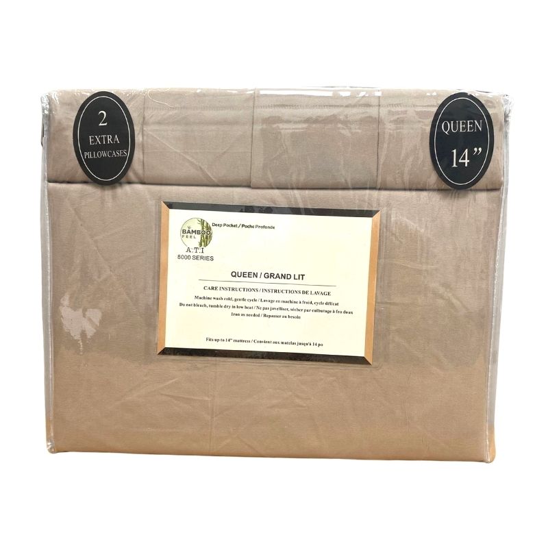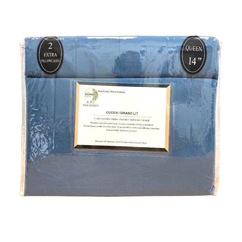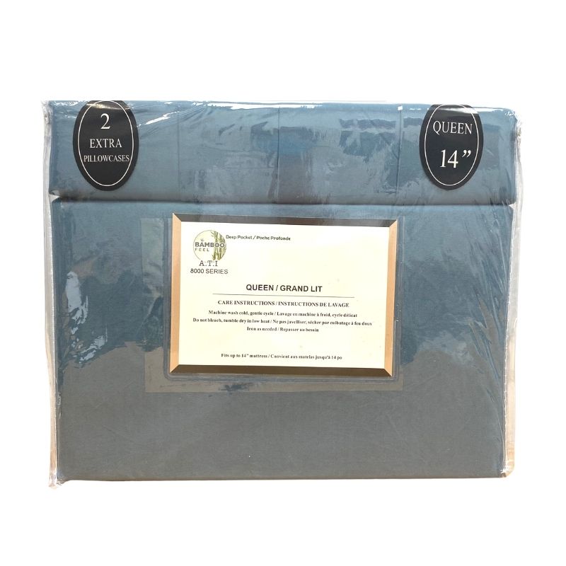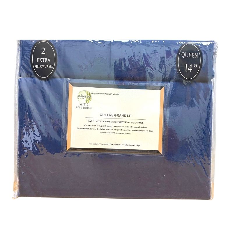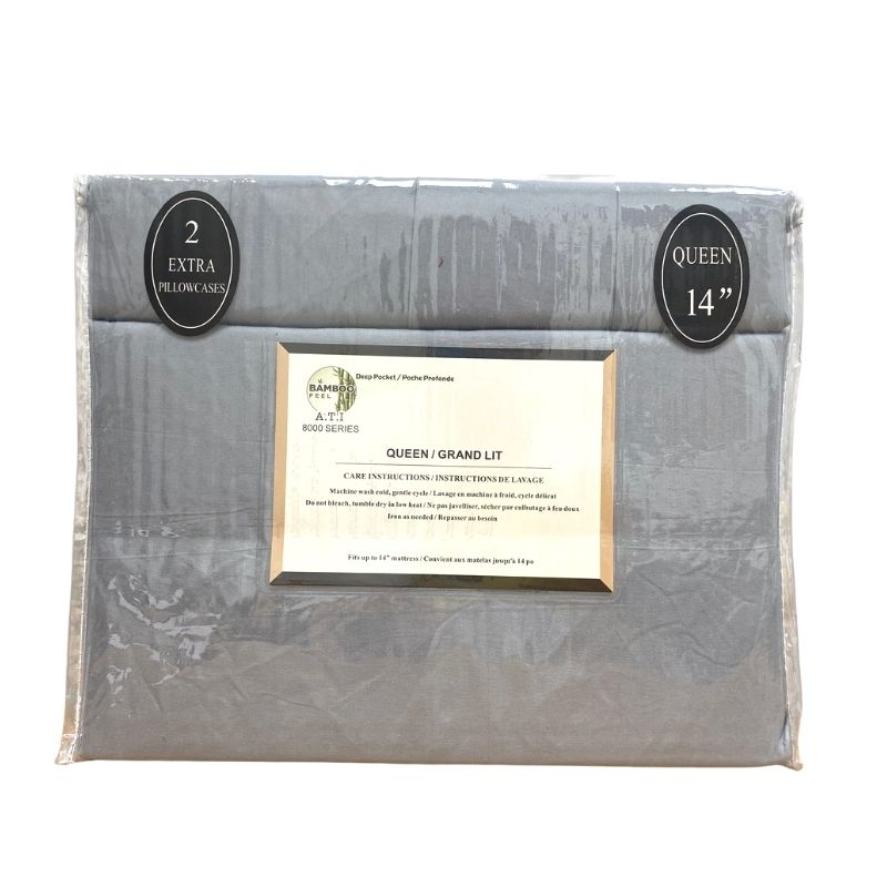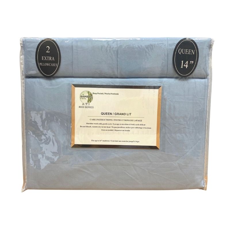 - DETAILS: Wholesale Queen Sheet Set, 8000 series. Includes 1 flat sheet, 1 fitted sheet, and 4 pillowcases. The sheet set has a soft luxury feel, wrinkle-free, and breathable. fits up to 14″ mattress.