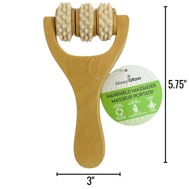 - DESCRIPTION: Durable wooden massager with a textured roller for deep muscle relaxation and improved circulation. Compact and easy to use, perfect for home wellness routines, stress relief, or inclusion in spa and self-care gift sets.