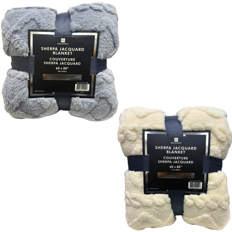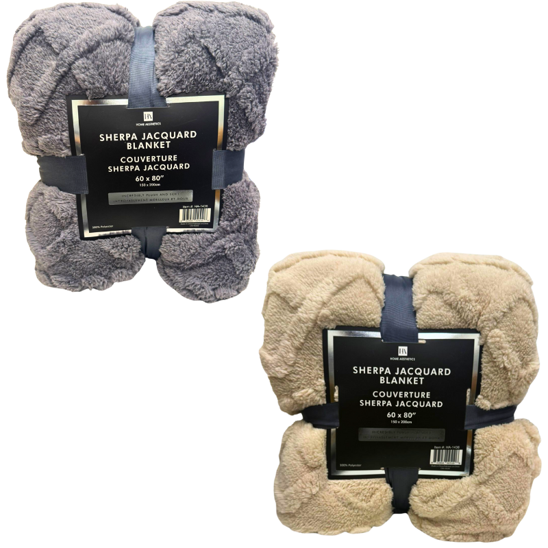 - DESCRIPTION: A generously sized fleece throw designed for warmth and comfort. The jacquard pattern adds texture, while the soft fabric provides a cozy feel for lounging or layering on beds and sofas. Measuring 60 x 80 inches and available in assorted colours, it’s a versatile option for home use or colder evenings.