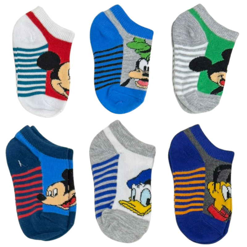 - DESCRIPTION: Set of six kids socks featuring Mickey Mouse designs in assorted colours, size 4–7. Designed for everyday comfort with a soft, breathable fabric to help keep feet comfortable throughout the day. A fun and practical sock option suitable for school, play, and daily wear.