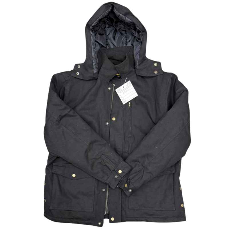 Wholesale Adult Winter Work Coat with Detachable Hood – Black – Sizes M–2XL