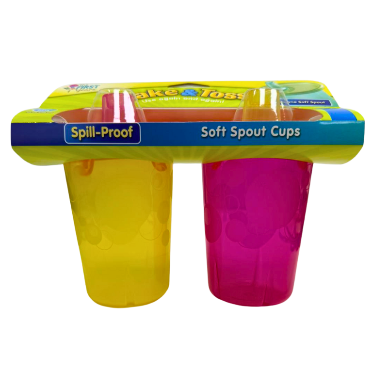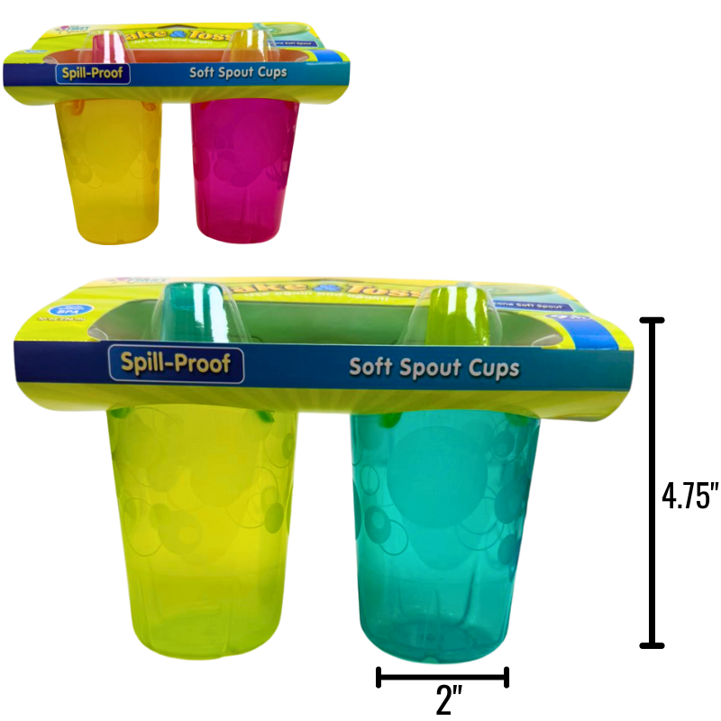 - DESCRIPTION: Pack of 2 soft spout sippy cups designed for easy drinking and spill control. Made from durable, child-friendly materials, perfect for toddlers at home, daycare use, or inclusion in family support and childcare programs.
