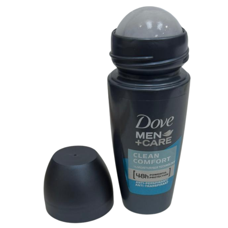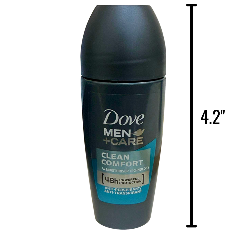 - DESCRIPTION: Men’s Dove Clean Comfort roll-on deodorant, 50ml—offers 48-hour protection with a crisp, clean scent. Perfect for hygiene kits, travel, or donation programs focused on personal wellness and care.