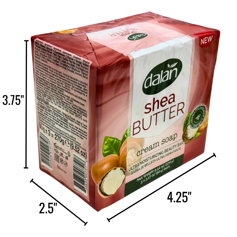 - DESCRIPTION: A rich shea butter bar soap crafted for soft, comfortable cleansing. Each pack includes three 90 g bars, delivering a creamy lather that helps moisturize dry skin without feeling heavy. A reliable, nourishing option for home use, shelters, hygiene kits, or anywhere a gentle daily soap is needed.