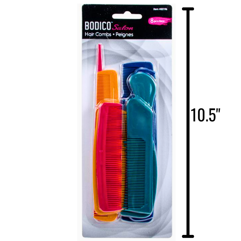 - DESCRIPTION: Includes 8 different types of combs in assorted colors—perfect for all hair types and styling needs. A practical addition to hygiene kits, shelters, or donation bundles focused on personal grooming.