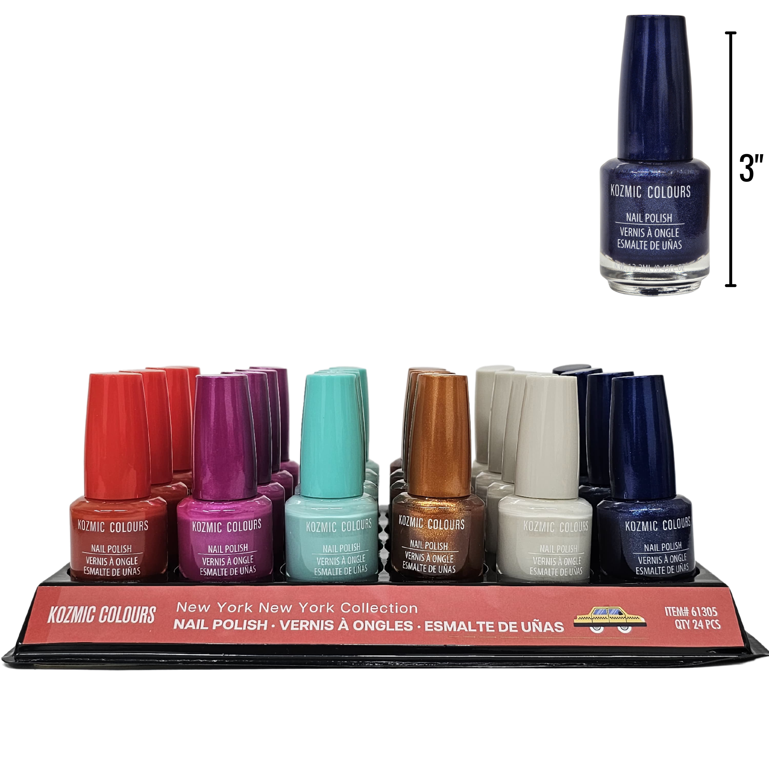 - DETAILS: Unleash the spirit of the city with our exclusive Kozmic Colours Nail Polish Set from the New York Collection. Each set features an array of eight trendsetting shades that capture the essence of metropolitan chic – from bold reds to serene blues and versatile greys. Our long-lasting formula ensures a flawless finish that will keep your nails looking polished and perfect.
