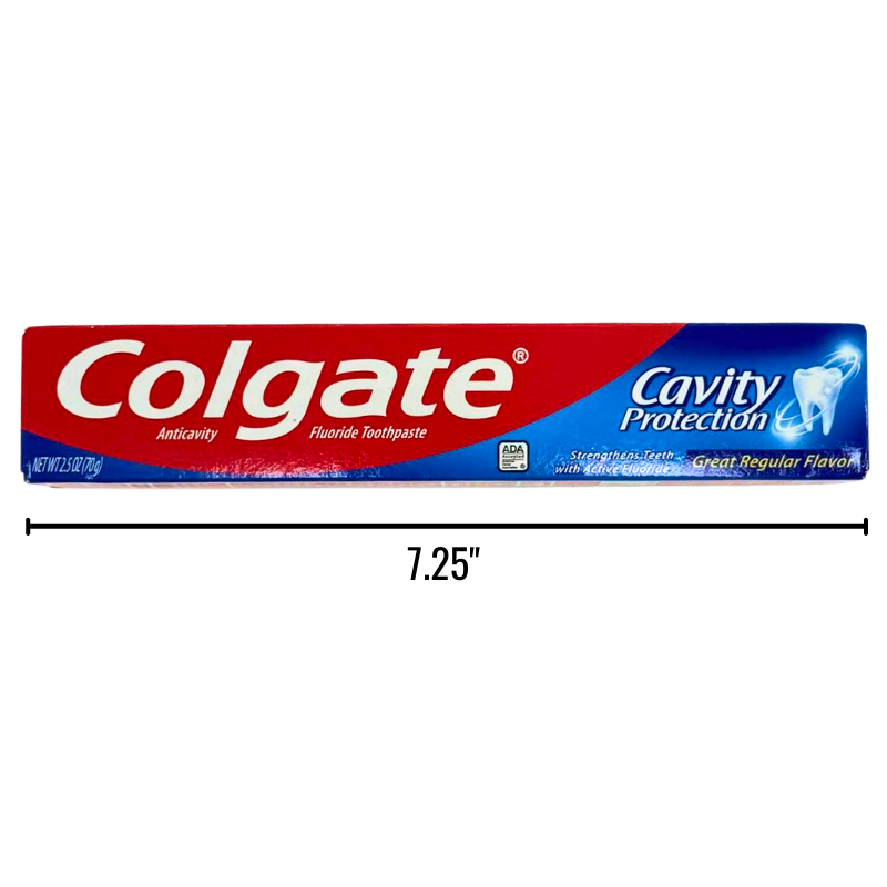 - DESCRIPTION: A reliable everyday essential, Colgate Cavity Protection helps strengthen enamel and fight cavities with its classic fluoride formula. The 70g size is super practical — easy to toss into a travel bag, keep in a desk drawer, hygiene kits or at home without taking up space.