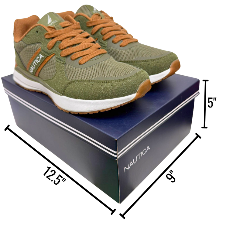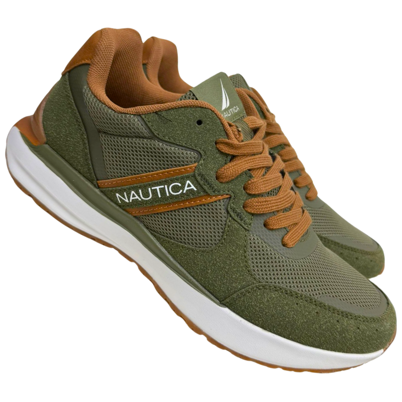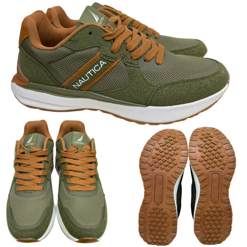 - DESCRIPTION: Men’s Nautica running shoes in olive, designed with a cushioned insole and lightweight sole for comfort and support. Perfect for daily wear, workouts, or casual style, while also suitable for inclusion in select donation or community programs.