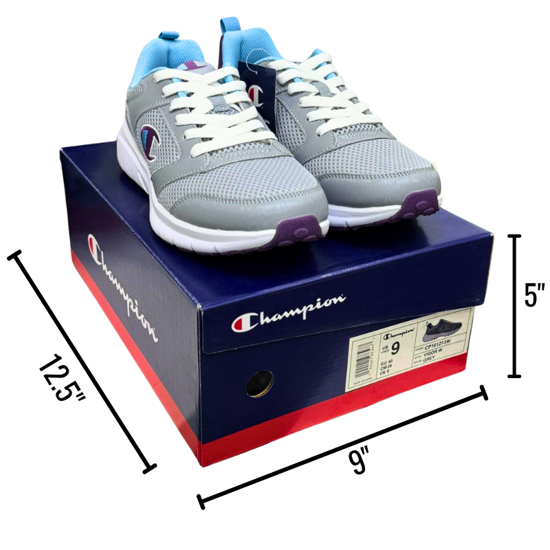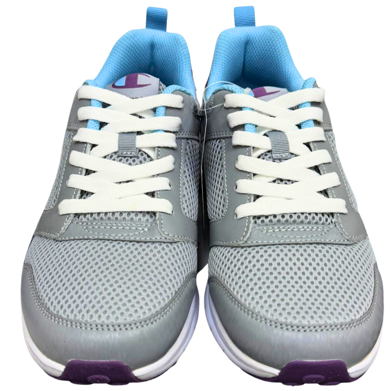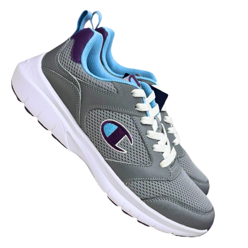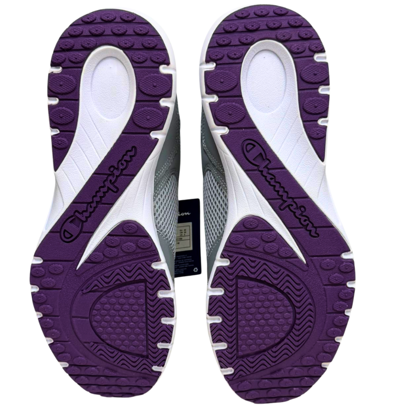 - DESCRIPTION: Women’s Champion running shoes in grey, designed with a cushioned sole and breathable upper for comfort and performance. Suitable for workouts, casual wear, and active lifestyles, while also a strong option for community programs or donation initiatives.