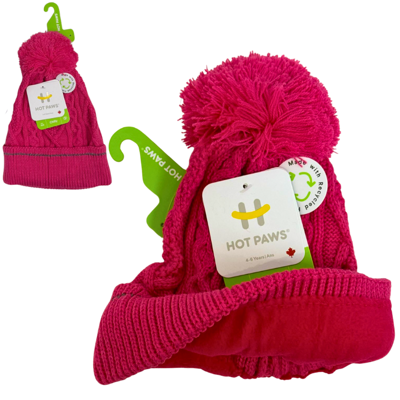 - DESCRIPTION: Cute, cozy, and easy to wear, this children’s toque features a soft pom pom for a playful touch. Made from warm, stretchable knit fabric to keep little ones comfortable all winter long. Available in four assorted colours, it’s ideal for daycares, schools, or community winter programs.
