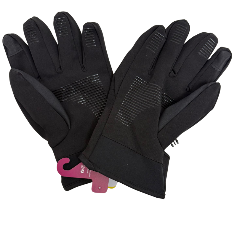 - DESCRIPTION: Pair of adult sport gloves in black, available in sizes S–XL. Designed with a Hyprarel-lined interior to provide added warmth and comfort while maintaining flexibility for everyday use. Touchscreen-compatible fingertips allow for convenient device use without removing gloves. A functional cold-weather glove option suitable for daily wear and outdoor conditions.