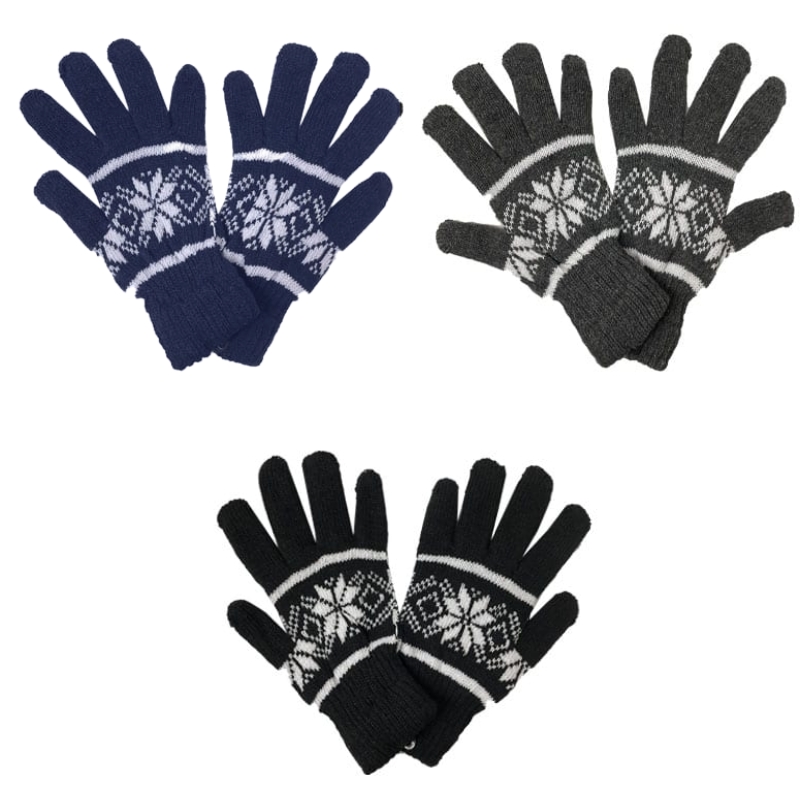 Wholesale Adult Heavy Knit Gloves – Snowflake Pattern Asst Colours