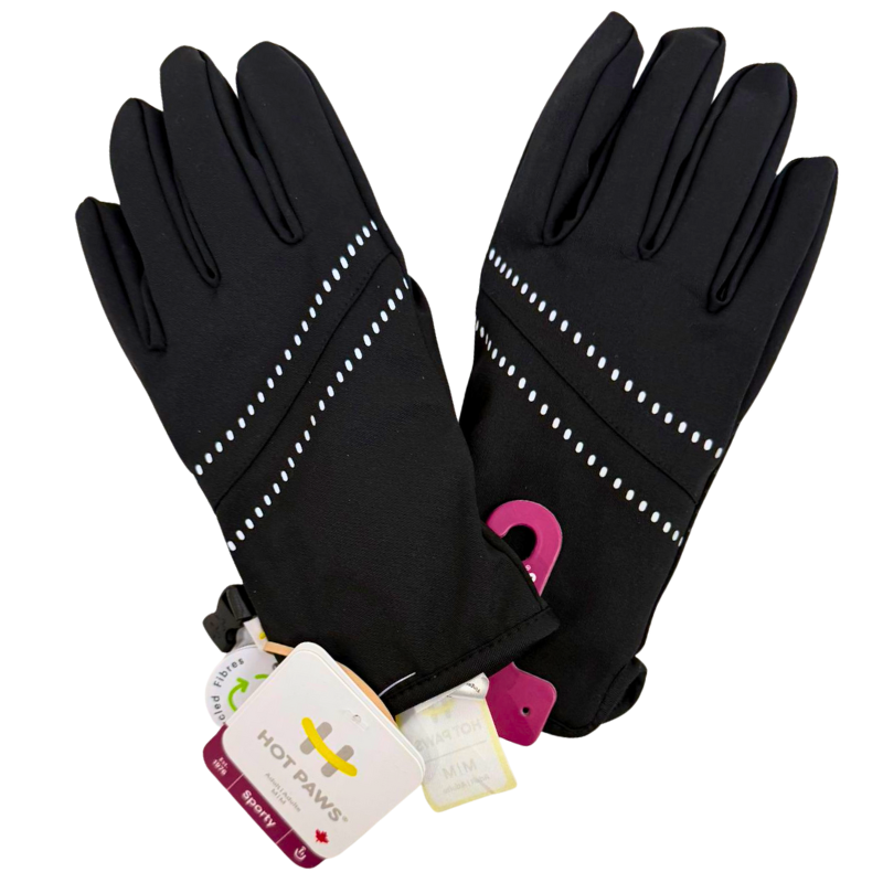 - DESCRIPTION: Pair of ladies’ sport gloves in black with dotted detailing. Designed with a warm sherpa-lined interior to help keep hands insulated and comfortable in cold-weather conditions. A practical winter glove option suited for everyday wear and outdoor use.