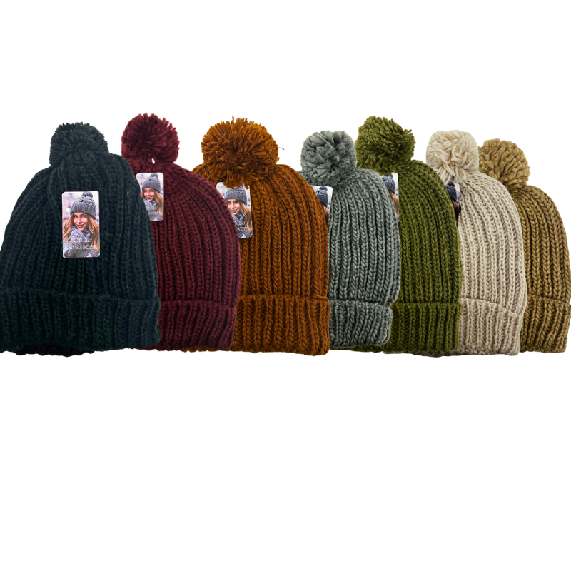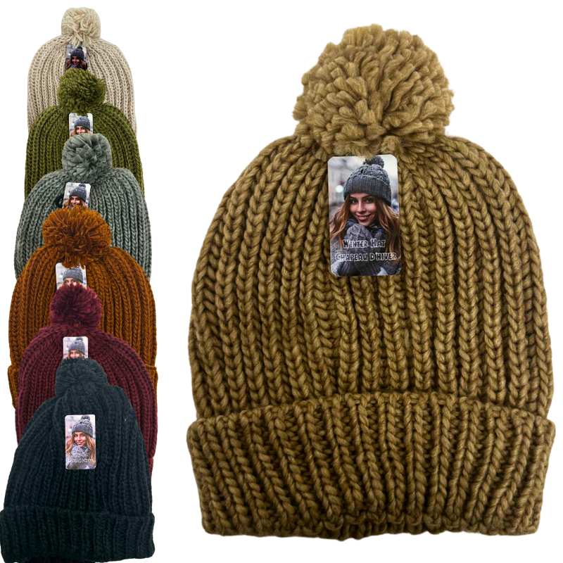 Wholesale Ladies Knit Pom Pom Toque – 7 Colours
