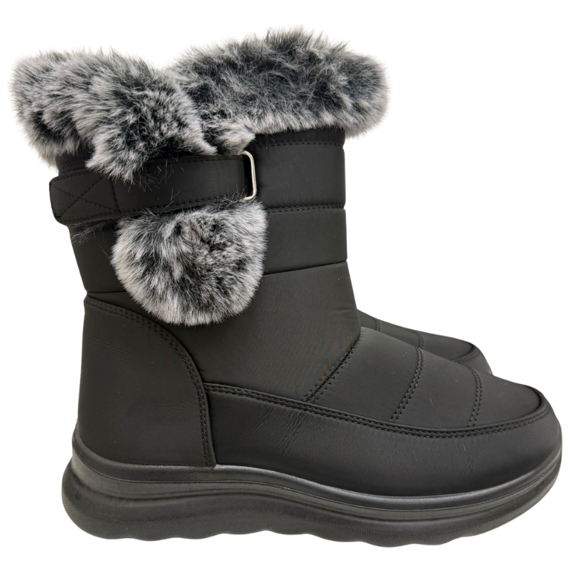 - DESCRIPTION: A dependable everyday winter boot with a clean black design that pairs easily with any outfit. The insulated lining helps keep feet warm, while the sturdy sole provides traction for walking through snow or slush. Comfortable for commuting, running errands, or general winter wear, making it a practical staple for the colder months.