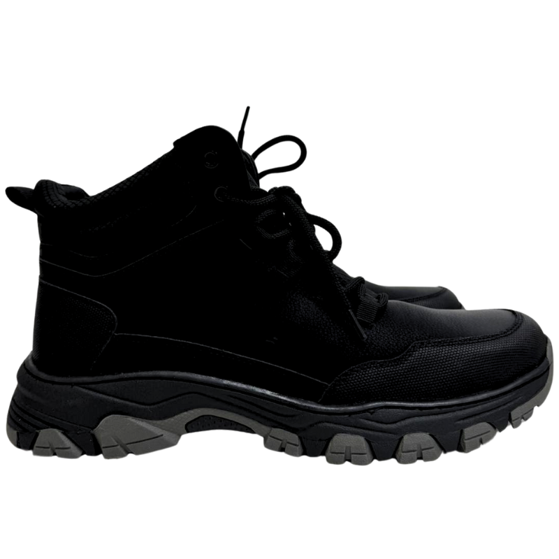 - DESCRIPTION: Stay warm and steady with these hiker-style lined winter boots. Featuring a durable black exterior, cushioned interior lining, and strong grip soles, they’re built to handle tough winter conditions with comfort and stability. Ideal for outdoor work, walking, or cold-weather community programs.