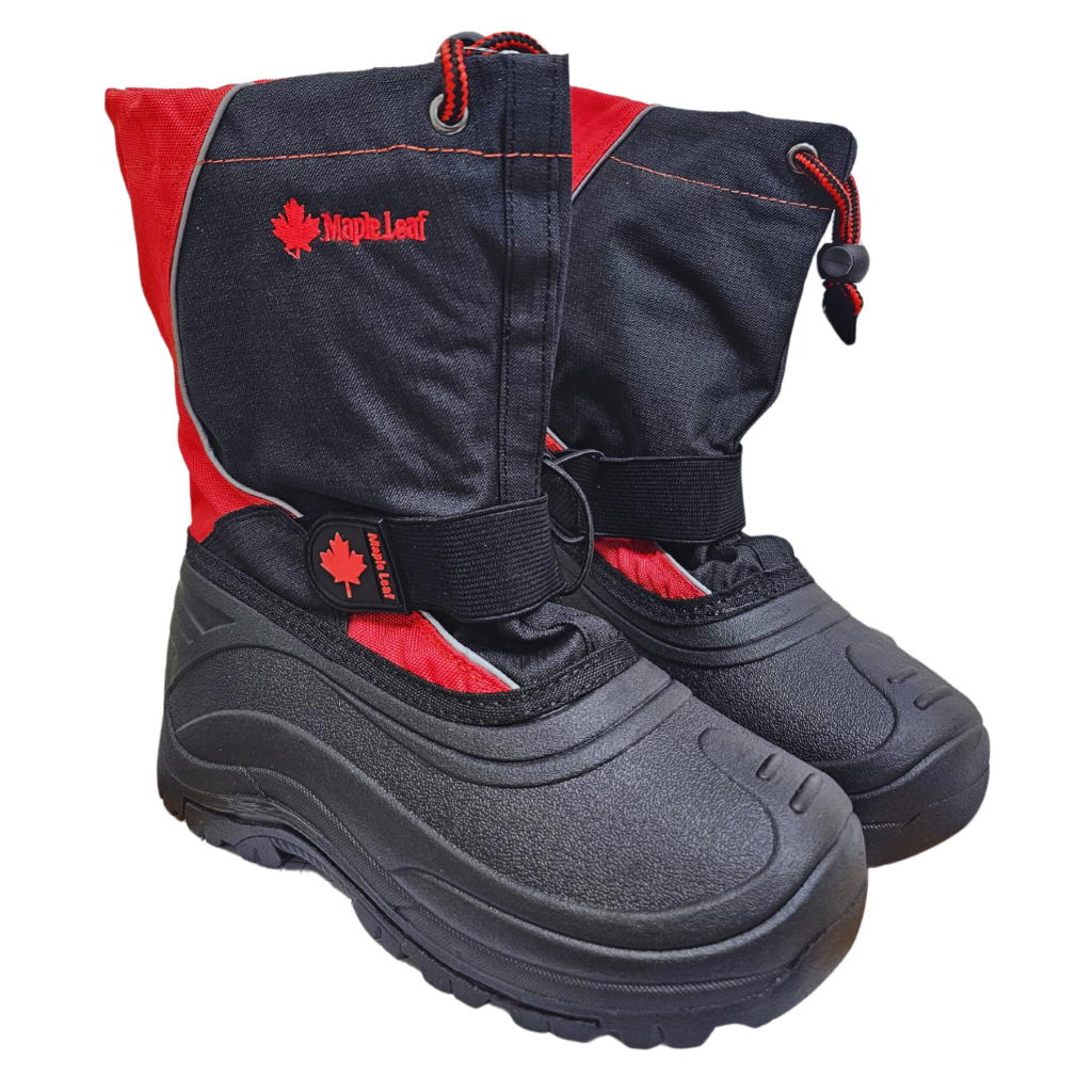 Wholesale Youth Winter Boots, Nylon Velcro, 9″ Tall, Red & Black (Size 11-3)